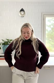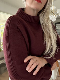 The Winehouse Sweater is a timelessly stylish wardrobe staple, worked seamlessly from the top down. Its charm lies in the beautiful, fit-enhancing details: the shoulder seams of the saddle shoulders continue crisply from the armhole down through the underarm to the hem, and short rows are added to the back to improve the fit of the neckline.