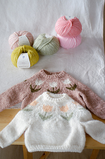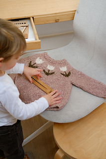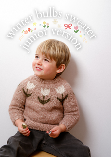 Winter Bulbs Sweater (junior version) is an easy pattern to practice colorwork. It’s the children’s version of my adult tulip yoke sweater, so you can dress all matchy-matchy. It’s knitted in the round with circular needles and you never work with more than 2 colors at the same time, making it very easy to follow. It is worked seamlessly in one piece and offers several finishing options to adapt it to your preferences.