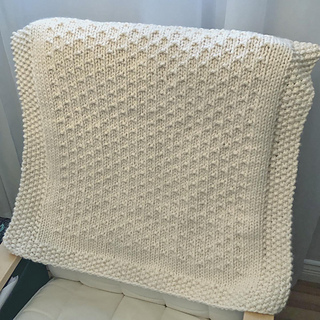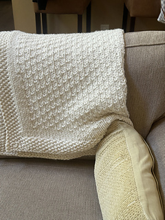 Winter Dance blanket knitting pattern is easy to knit with super bulky yarn. The center pattern is a 4-row repeat that is very easy to remember. The blanket is framed by a classic seed stitch border.