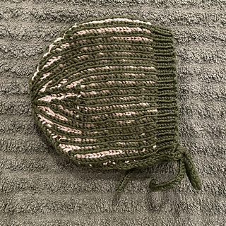 Both the pixie hat and the bonnet are knitted flat, starting at the front rib torwards the back.