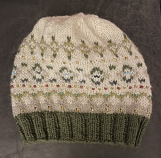 Winter Sparkles combines the elegance of Fair Isle with the shimmer of beads. This cozy yet glamorous hat will keep you warm all season long.