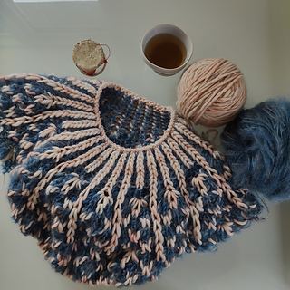 The Winter Tales Sweater is a sweater in a sophisticated brioche pattern. Worked in two different types of yarn you get a spectacular look.