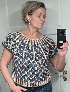 There is a positive ease of 28 (34, 28, 32, 28) (20, 20, 20, 8, 6) cm / 11 (14, 11, 13, 11) (8, 8, 8, 4, 3) inches in the sweater.