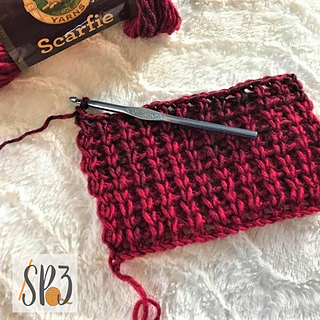 Sample made with 1 Skein Lion Brand *Scarfie color: Cranberry Black