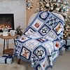 his is my Winter Wonderland blanket - it is made up of 25 squares with lots of Christmas themed appliques such as Santa, reindeers, penguins, snowmen and snow ladies, Christmas puddings, robins, presents and snowflakes.