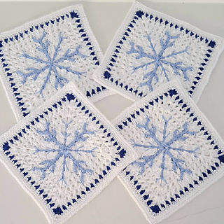 I used Hobbii Friends 8/4 cotton with a 3mm hook for all parts of the blanket. The blanket uses basic stitches along with front post, back post, bean stitch and crossed stitches. The squares are joined using a continuous flat braid join and finished with a wavy edge. It is suitable for intermediate crocheters.