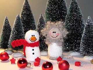 Bei Verwendung von Baumwollgarn mit einer Lauflänge von 125m/50g und einer Häkelnadel Stärke 2 wird der Schneemann ca. 7 cm und das Schneeflöckchen ca. 9 cm groß
