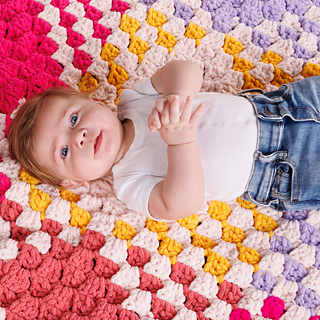 A cozy expression of love, this crochet blanket is featured in Bernat Blanket Brights.