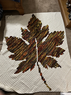 Wrap yourself in the cozy embrace of this Woodland Whimsy Afghan, featuring a rich, dark green background that enhances the autumn colors of the leaf. Make this afghan using the C2C (corner to corner) method. This giant fall leaf will make a great statement piece for your living space!
