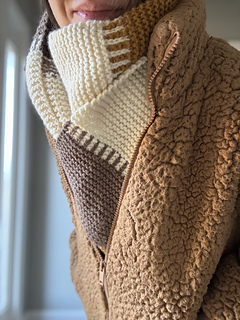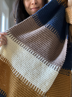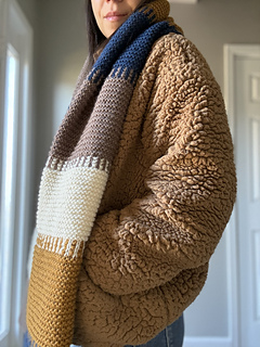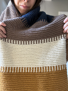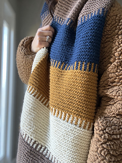 The Woolly Wrap is a joy to knit with sections of garter stitch broken up by corrugated ribbing. The color block design lends itself to endless options for customization. Knit in timeless Wool-Ease, enjoy the warmth of wool with the easy care properties of acrylic.