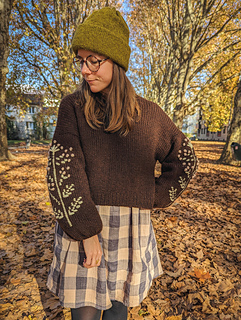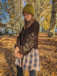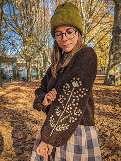 This sweater is especially close to my heart—rooted in the garden, touched with folklore, and wrapped in the rustic coziness of Rauma Vams.
