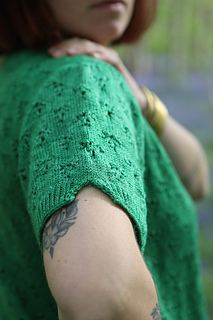 Zerda est donc un gilet en top-down, entièrement paré d’un petit motif cœur ou triangle (en fonction de ce que l’on veut voir). Il se tricote en aller-retour avec le dos et les devants travaillés en premier au fur et à mesure. Le corps est ensuite rejoint et tricoté droit. Les manches montées sont reprises ensuite, avec quelques augmentations sur la tête d’épaule, pour une jolie finition de manches courtes. Pour finir, il est bordé de côtes 1/1 torses et l’encolure est tricotée après-coup tout comme les pattes de boutonnage.