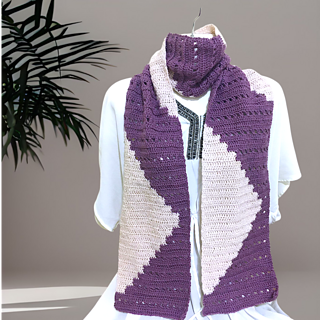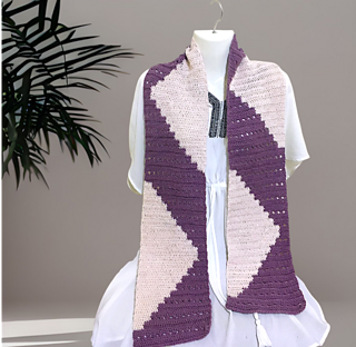 This Zig zag scarf is a colourwork textured scarf worked up using dc, BLO dc & crossed stitch dc (Xdc).
