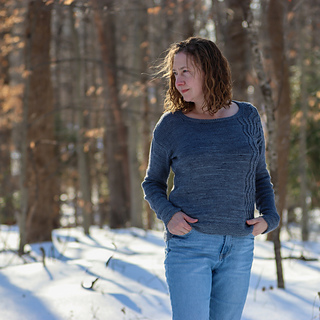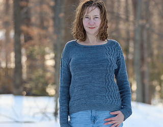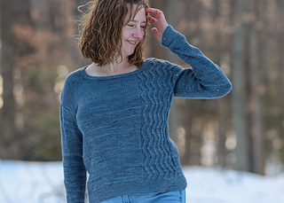 Ziggy is an easy to wear & easy to knit drop shoulder sweater with casually-cool lightening cables traveling up one shoulder. A thick garter stitch hem and cuff complete the care-free vibe.