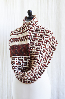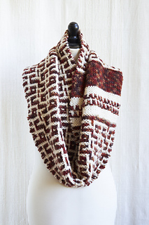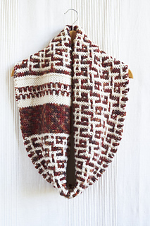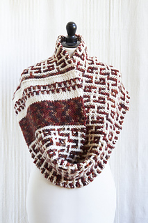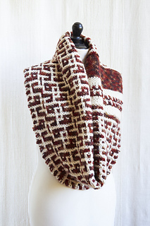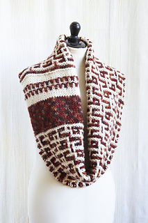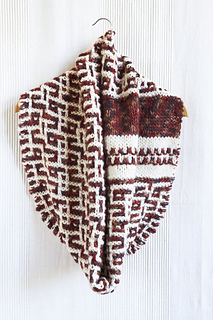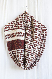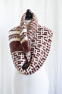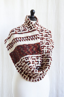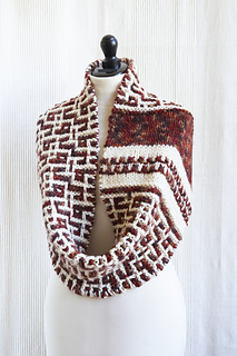 Basic stitches, slipped stitches. Multiple increases and decreases. Mosaic knitting. Stitch patterns requiring some attention. Easy patterning on all rows. Working stripes. Dealing with changing stitch counts. For the cowl: Judy’s Magic CO, grafting (or three-needle BO). For the scarf: Long-tail CO, elastic BO. Suggestions are given to customize the pattern.