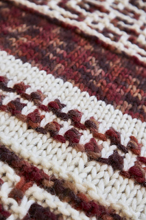 11 stitches and 19 rows = 10 cm / 4 inches in Stitch Pattern B – Switchback, blocked with MC and CC.