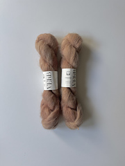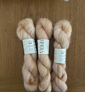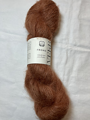 Frond is a radiant beam of halo and glow, due to its content of mohair and silk. Light as a cloud, with a fluffy halo of mohair surrounding a strong silk core, knit Frond by itself to create an airy fabric, or held double to add a little thickness and even more halo! You can also knit it held alongside another yarn; we love it paired with Flock, Gather, and Horizon.