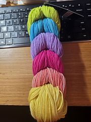 Color bundle is a braid of 6 corresponding or gradient colours of ARTFIL’s super-soft fingering yarn tied together. Each colour is approx. 20g. for a total of 444 yds per braid! To achieve a true gradient look work simultaneously the required skeins.