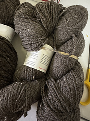 A subtly heathered 2-ply blend of rambouillet, columbia, lincoln, navajo-churro, alpaca, silk, bamboo, tencel, bison, and llama, with a slightly bumpy tweed look.