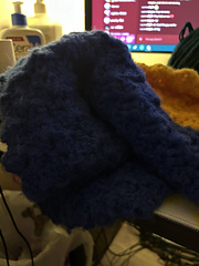 Knitting Gauge: 4” x 4” (10cm x 10cm) 13 sts x 17 r with 8 mm (US 11) Knitting Needles