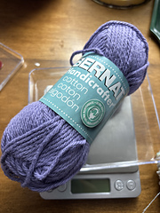 100% cotton. May come in various skein sizes. Customize (edit) yardage/skein size at the stash level. 1.78 yards per gram.