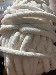 Bernat Plush Big is the perfect yarn for your fast and long-lasting home decor projects. The soft, squishy velour shell adds a unique clean, pillowy texture that can be used for both traditional knit and crochet projects or to table knit with just your hands. The thick yarn means you can make projects in a flash and with a combination of high stitch definition and thick gauge you will look like a pro showing off intricate-looking stitch definition.