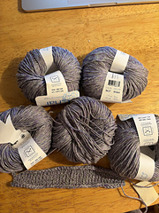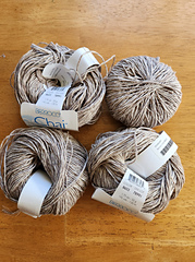 Light and dark strands blend together to create a DK weight yarn that gives a stonewashed look to your pieces. The fabric has a slight sheen and the linen gives it a perfect summery drape.