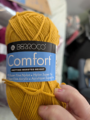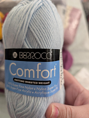 Comfort is an ultra-soft blend of Super Fine Acrylic and Super Fine Nylon, spun into a luxury twist. The yarn is easy care – machine wash and dry – and allergy free. Affordably priced, Comfort is available in an exquisite range of 50 solids and 7 print shades.