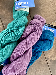 Cosma is a luxurious blend of merino wool, alpaca and silk with a sophisticated, contemporary color palette. The multi-plied and refined twist creates a classic yarn that’s perfect for wearable sweaters and heirloom accessories.