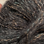 Multi strands of colorful fibers are braided together to give a subtle color effect. The blend of brushed alpaca, cotton, nylon, and wool creates a yarn that is light, warm and easy to work with.