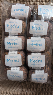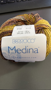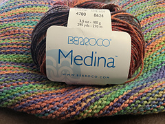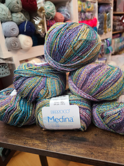 Warm colors ebb and flow in this long-color repeating yarn that is ideal for summer accessories and garments. Berroco Medina blends cotton, acrylic, and viscose in a DK-weight yarn with gorgeous colors.