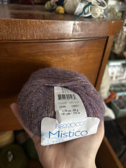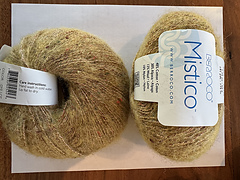 Brushed alpaca creates a soft halo while the cotton, wool and nylon core seem to illuminate flecks of color in our new yarn Mistico. The fabric created with this yarn is soft and light but retains a good stitch definition.