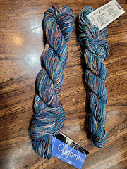 Origami™ is an exciting new yarn for warm weather months. Many multicolored strands run parallel to each other, wrapped by a black binder and it knits into a remarkably light and crisp finished fabric.