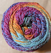 Bright, happy shades of colors ebb and flow to make this worsted weight yarn a perfect summer choice. This cotton blend yarn is light to the touch, easy to work with and self striping.