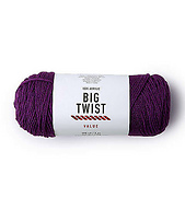 Every stash needs an all-purpose acrylic yarn, and knitters and crocheters love Big Twist Value yarn! Perfect for a wide variety of projects, this worsted weight acrylic yarn comes in a large 6-ounce (380 yard) ball perfect for larger projects. The wide range of solid colors pair well with the ombré shades of Big Twist Value Ombre yarn for endless design possibilities. It is machine washable for easy care, making it ideal for garments, blankets, accessories, toys, and home décor projects. Imported.