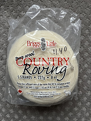 A 5-ply pencil roving type wool that knits to a similar tension as the the discontinued White Buffalo yarn. Country Roving is slightly finer (63m/100gram) than White Buffalo (49m/100gram).