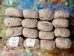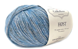 HØST is made of a tube of organic cotton and is a blow yarn. The organic tube is dyed with a special spraying technique, which gives the yarn a beautiful melange and a unique play of colours. A blend of recycled wool and organic cashmere, is blown into the tube. The cashmere turns the yarn into a luxury yarn.