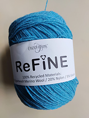 A post-consumer recycled blend of Superwash merino wool, nylon and viscose in light fingering weight, ReFine has generous yardage and works up beautifully for socks, shawls, light weight garments, and accessories.