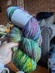 Hand dyed and incredibly soft superwash Merino wool that has been put up in very large skeins of 8.5 oz. These give you 1120 yards of beautifully hand-dyed softness.