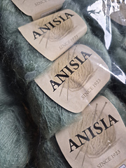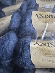 Anisia is a luxurious lace-weight yarn made of a delicate fiber blend of 76% kid mohair and 24% polyamide. The mohair will add a beautiful drape and halo to your work, while the polyamide will provide strength and durability helping the fabric to hold its shape.