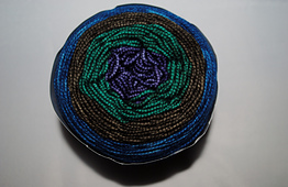 Potluck Yarn author and Cherry Tree Hill founder Cheryl Potter went to Peru to source fair trade yarns and teach a shifting shades handpaint technique in which 50-60 yards per color is painted onto one hank of yarn. She calls this new technique Broad Band as opposed to self-striping.