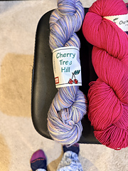 Supersock Potluck is the same yarn as the Cherry Tree Hill Supersock, just dyed in random, “potluck” colors that don’t meet the color standards for the regular line. They are sold to retailers packaged in 6 packs of similar hues, but different dyelots.