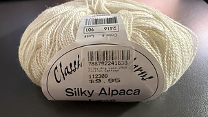 The alpaca in this yarn provides warmth and a soft halo; The silk adds a subtle sheen to the knitted stitches. Worked in lace with larger needles, Silky Alpaca Lace makes lovely, light-as-air shawls, garments and accessories.