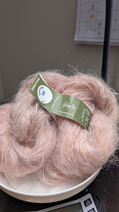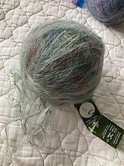The original put up was 100g and the fibre content was 78% mohair, 13% wool, 9% nylon with 175m per 100g skein.