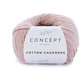 From the CONCEPT by Katia yarn line, Cotton-Cashmere is a 90/10 blended yarn that features an array of colors. The strength of cotton mixed with the silkiness of cashmere wool makes for perfect all-weather garments.