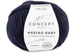 Merino Baby by Katia yarns is 100% extrafine superwash Merino wool. This yarn was created with children, babies, and those with sensitive skin in mind. Thanks to its Total Easy Care treatment, this yarn can be machine washed and tumble dried without sacrificing the handmade quality of any garments you make.
