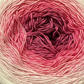 Sultan Deluxe is therefore incredibly suited for e.g. shawls and scarves since the long color transition will appear beautifully. Where the hue changes, you will see a tiny knot in one of the 4 twined strands that the yarn consists of. You can choose to ignore it which many crafters choose, or you can pull out a tiny bit of the yarn (the entire twined strand) in order to weave in the end at the back of your work.