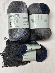 Danube DK is a single ply, tweedy VERY soft yarn. Great for knit or crochet. Soft flecked nubs of colors in a slow stripe color change for color effects with no need to change yarns.