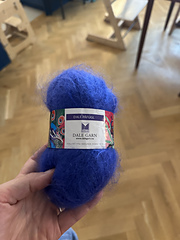 10 sts in stockinette with 9 mm needles. Yarn is knit at a loose gauge to accommodate the mohair halo.