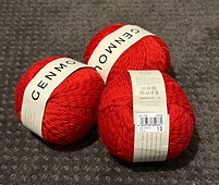 GENMOU is a 3-ply 100% merino wool yarn, with a ply of untwisted, carded wool, while the others are thin tightly-spun threads that holds the wool together. This unique construction makes the yarn airy and extremely light, while at the same time, makes the yarn wavy and resulting knit fabric very smooth. It is DK weight, warm, and great for wraps, garments and accessories.